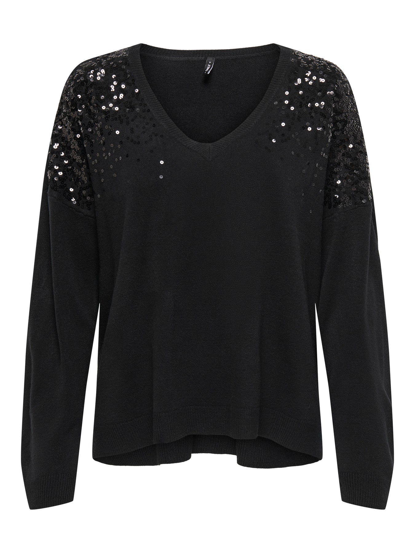 Add a touch of glamour to your everyday style with this chic black/red knit sweater. Designed with a flattering V-neckline, it features shimmering sequin embellishments along the shoulders and upper sleeves, giving it a sophisticated sparkle that transitions effortlessly from day to night. The soft knit fabric provides comfort and warmth, while the relaxed fit ensures a flattering silhouette for any body type.