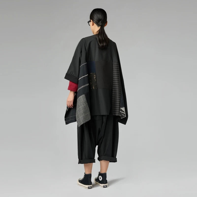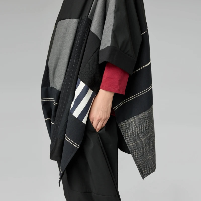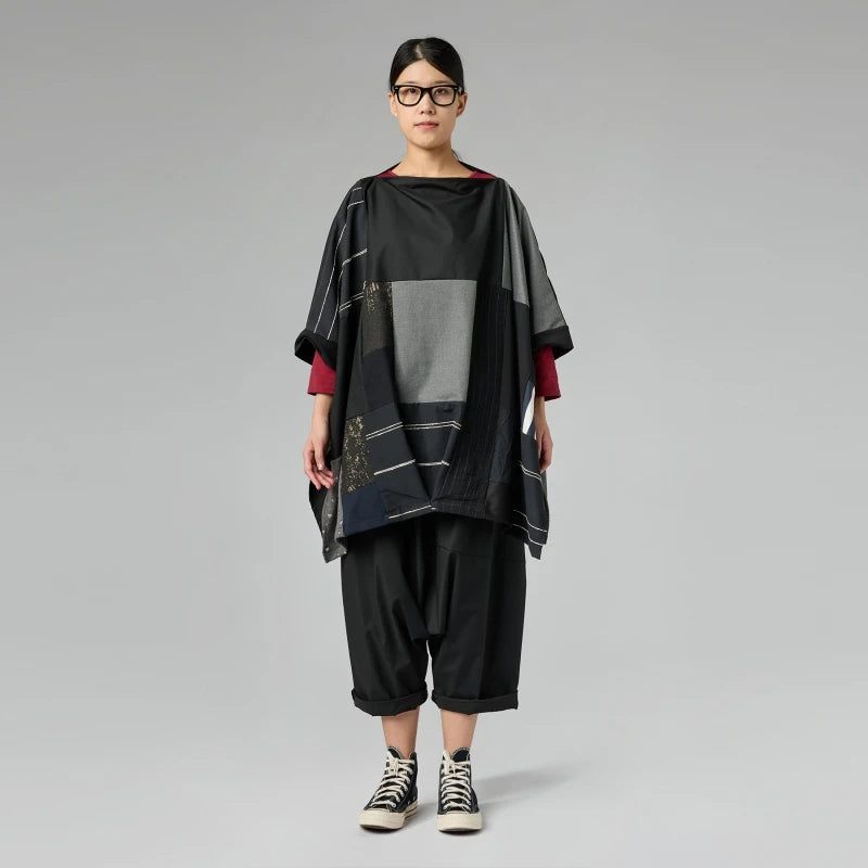 Make a modern statement with this short-sleeve blouse featuring a cool geometric patchwork design. The combination of monochromatic patterns and textures adds instant depth to any look. Its easy-to-wear shape and wide sleeves offer a comfortable fit that doesn't compromise on style .Perfect for those who love bold prints and unique construction