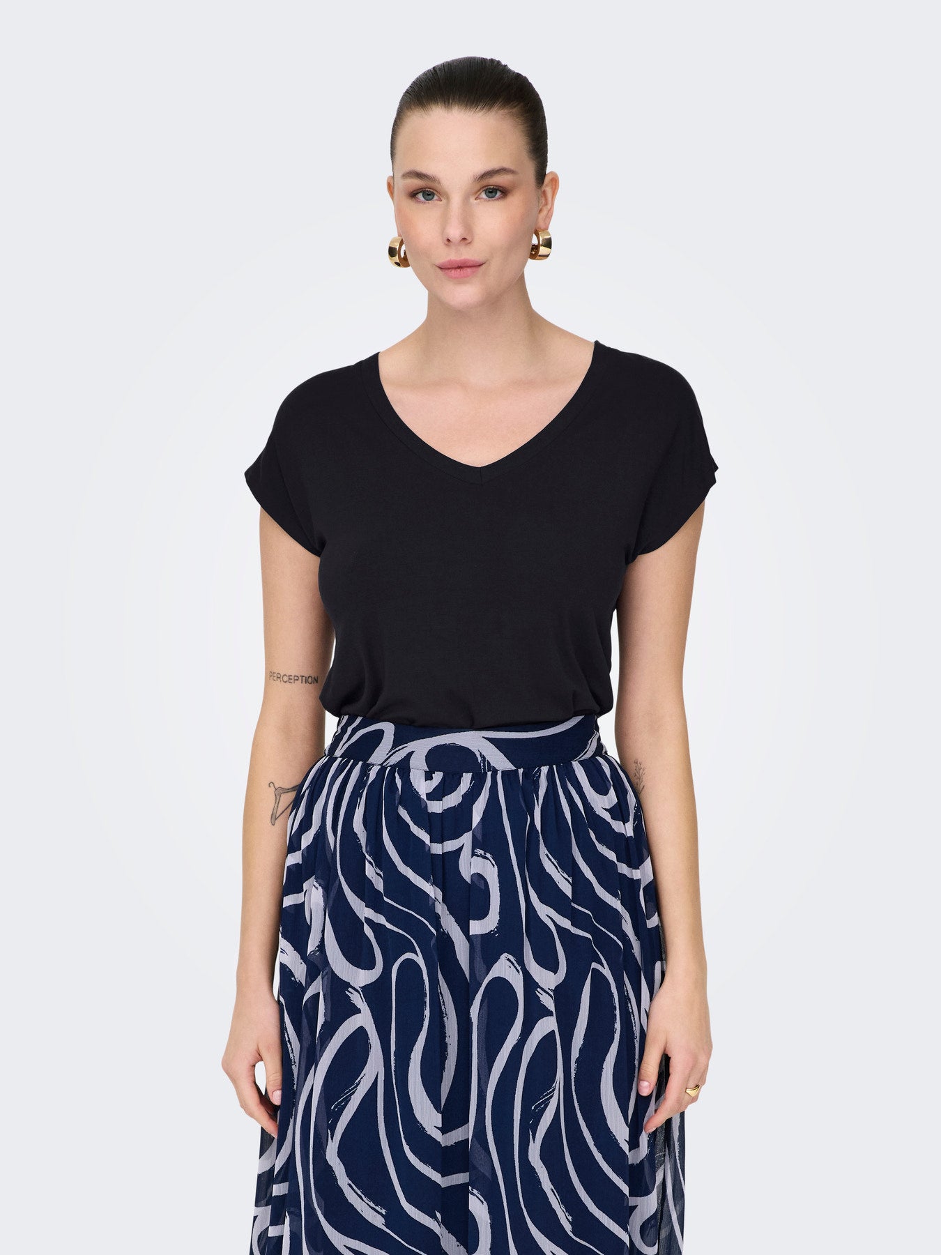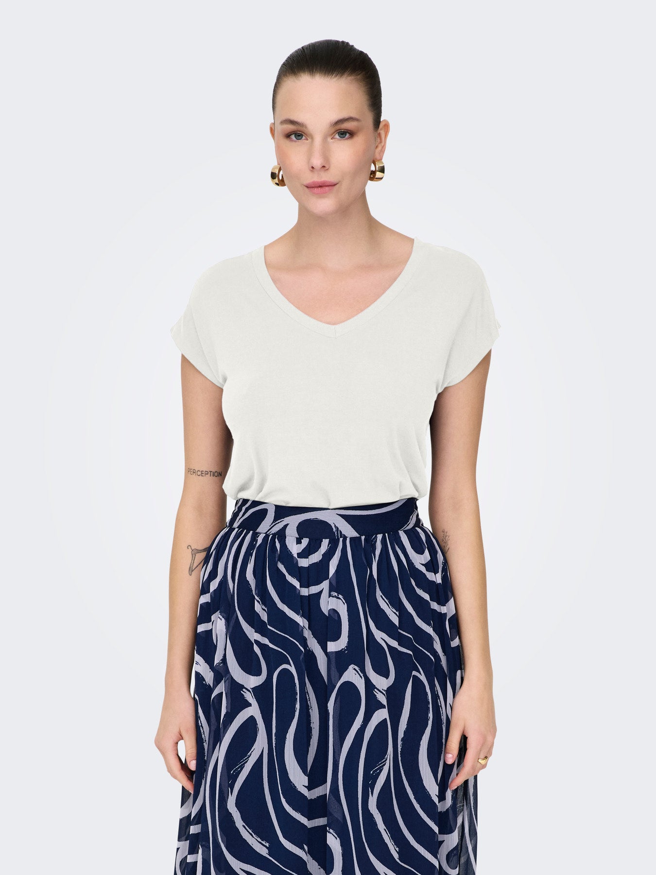 Add a pop of colour to your wardrobe with this sytish v- neck blouse from ONLY. Designed with a relaxed fit and soft lightweight fabric. The flattering v- neckline and short cap sleeves create a modern feminine look that is perfect for everyday wear. Its vibrant shade makes it easy to pair with jeans, skirts, or trousers for a chic casual outfit.