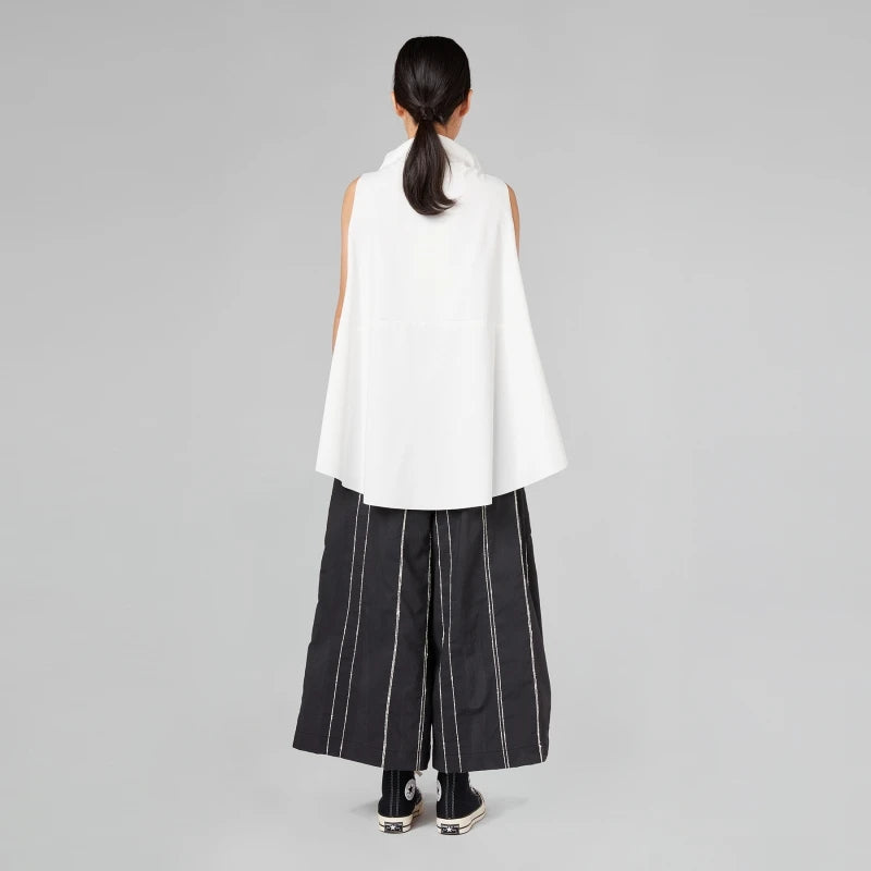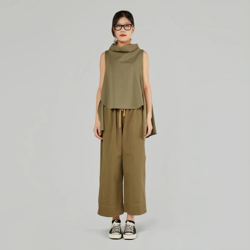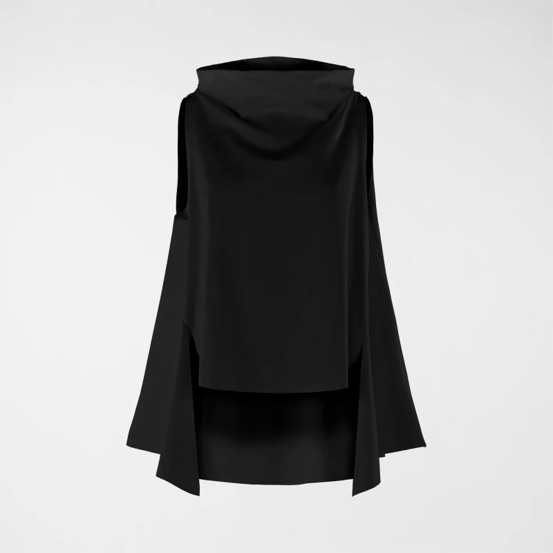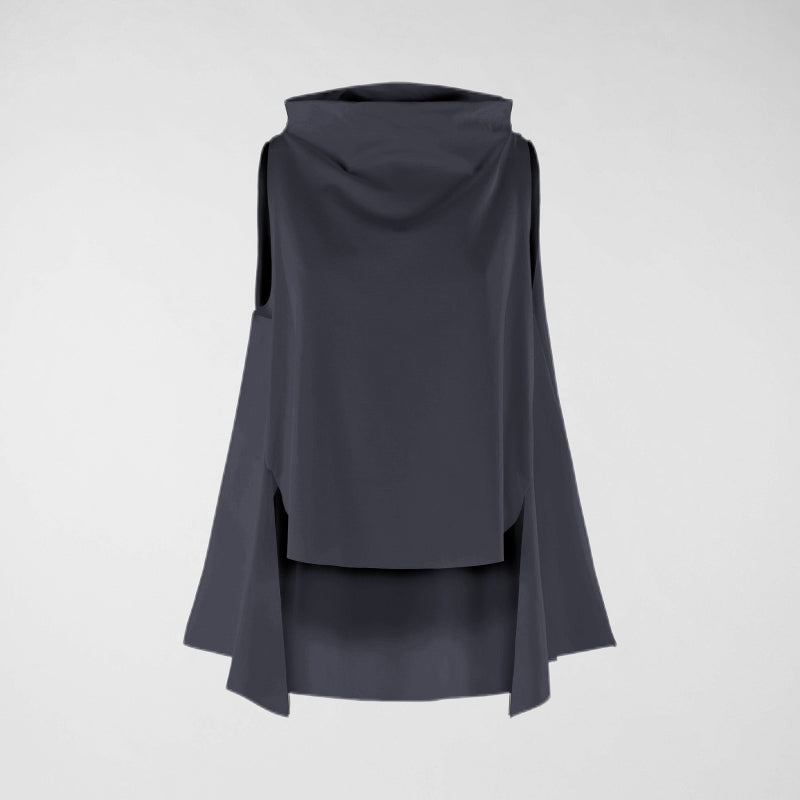 This sleeveless draped blouse brings modern elegance to any wardrobe. Designed with a soft cowl neckline and layered asymmetrical hem, it offers a sophisticated flow and flattering silhouette . The smooth , lightweight fabric ensures comfort and easy movement , making it perfect for both workwear and evening looks.