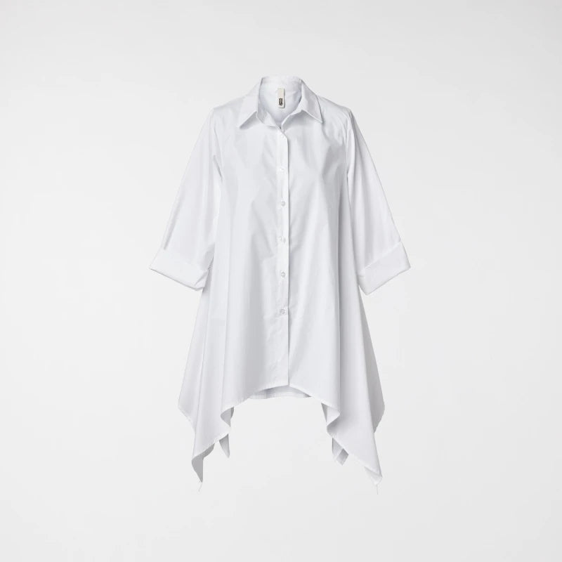 Elevate your everyday wardrobe with these modern White Asymmetric Blouse a piece designed for contemporary chic. Featuring a classic point collar and button-front , this shirt given a fresh update with a relaxed , oversized fit and unique three-quarter sleeves. Pair it with fitted trousers or denim to let the distinctive shape take centre stage making it an essential addition for a stylish , airy and versatile look.